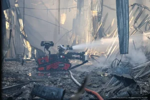 Heroiczna walka z żywiołem. Robot gaśniczy wykorzystany przy Marywilskiej 44. Przyjedź na Kongres i ZOBACZ, jak działa!