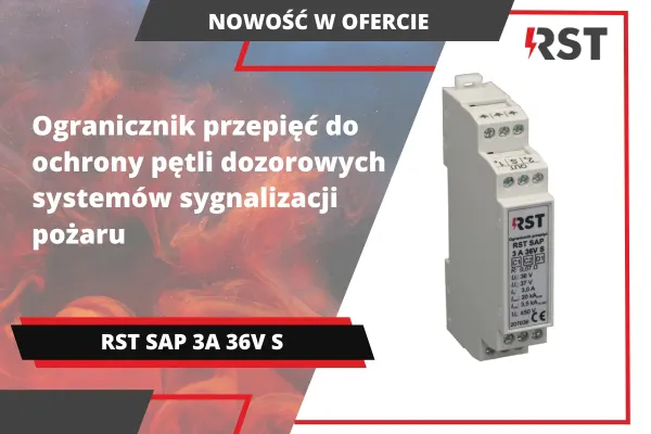 Oferta RST została rozszerzona o nowy ogranicznik przepięć, służący m.in. do ochrony systemów sygnalizacji alarmu pożaru, z serii RST SAP. Nasz topowy produkt RST SAP 3A 24V S do linii ekranowanych rozszerzamy o kolejny produkt z serii, na wyższe napięcie pracy, aż do 37V. RST SAP 3A 36V, dzięki izolacji ekranu kabla, od uziemienia, może być stosowany w dowolnym miejscu, w systemach, w których dopuszcza się uziemienie ekranu tylko przy centrali alarmowej. Ograniczniki RST SAP z diodami o podwyższonej odporności stanowią najbardziej wytrzymałą serię produktów RST Teletechnika. Poza produktami do ochrony systemów alarmowych w ofercie firmy RST znajdziesz również: